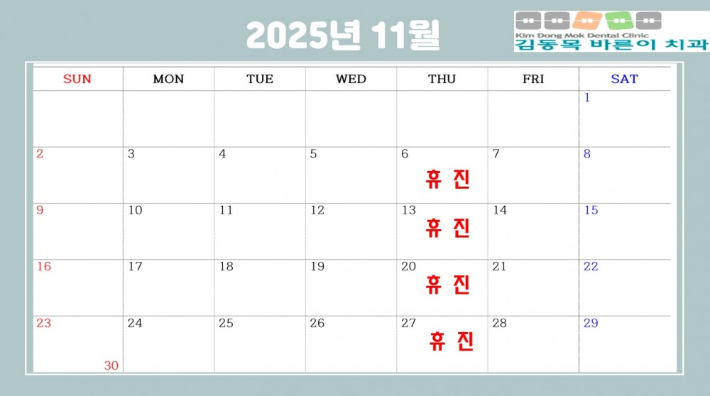2025년 11월 진료안내입니다. 페이지 정보 작성자 김동목바른이치과 작성일25-10-21 14:18 조회65회 댓글0건 관련링크 다음글 목록 본문 2025년 11월 진료안내입니다. 댓글목록 등록된 댓글이 없습니다. 다음글 목록