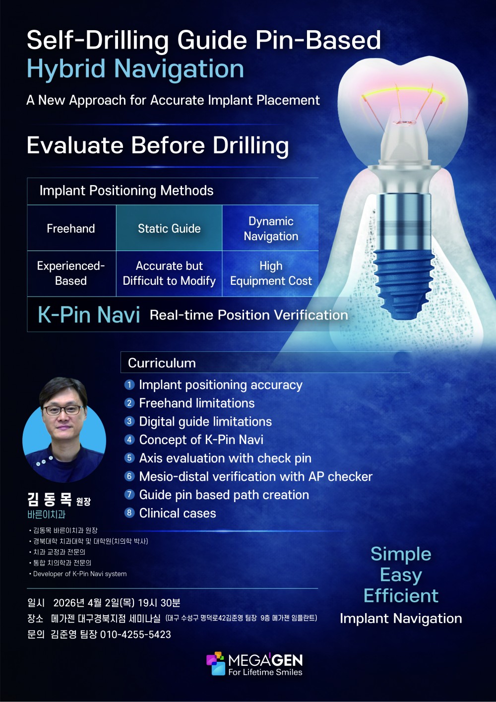 2026년 4월 2일 (목) K-Pin Navi 강연 페이지 정보 작성자 김동목바른이치과 작성일26-03-27 11:08 조회110회 댓글0건 관련링크 이전글 다음글 목록 본문 안녕하세요 김동목바른이치과입니다!2026년 4월 2일 (목) 19시 30분에 메가젠 대구경북지점 세미나실에서 K-Pin Navi 강연을 시작합니다.많은 관심 부탁드립니다 ^^ 댓글목록 등록된 댓글이 없습니다. 이전글 다음글 목록